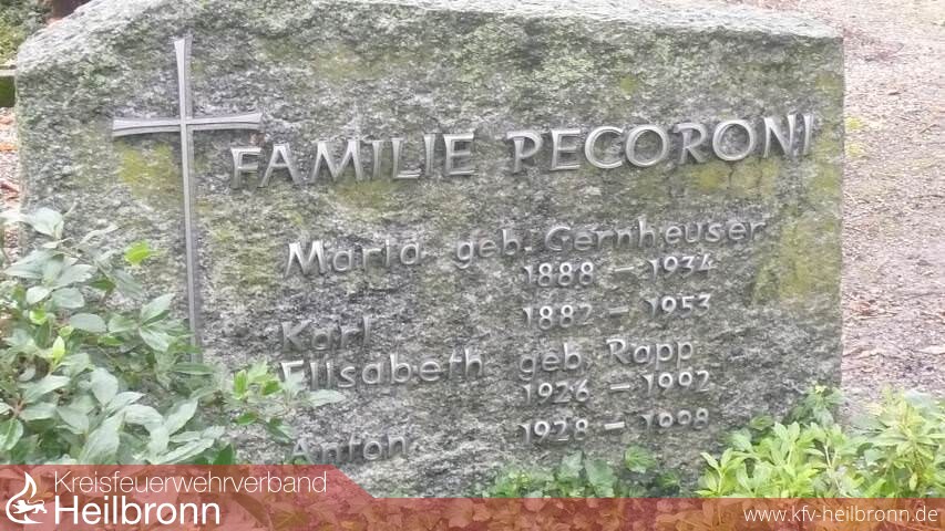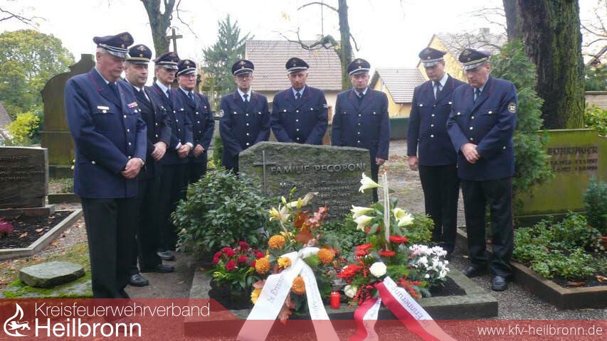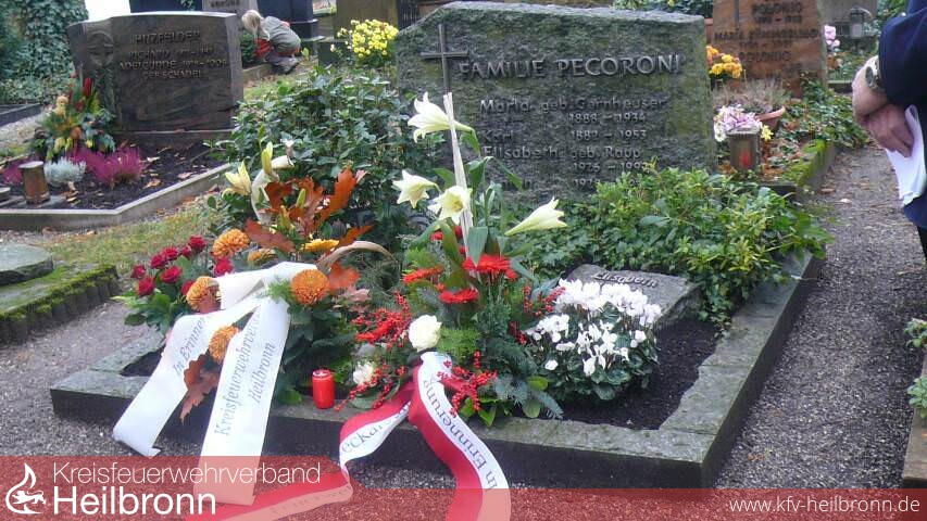 In Dankbarkeit erinnern wir uns unserem Ehrenkreisbrandmeister, Ehrenvorsitzenden des Kreisfeuerwehrverbandes Heilbronn und Ehrenkommandanten der Feuerwehr Neckarsulm, Anton Pecoroni, der heute, am Freitag, den 31.10.2008 80 Jahre alt geworden wäre. „Seinen Geburtstag nehmen wir zum Anlass, um das Versprechen zum ehrenden Gedenken, das wir vor 10 Jahren an gleicher Stelle abgegeben haben zu erneuern“ sagte Hermann Jochim, Kommandant der Feuerwehr Neckarsulm bei seiner Ansprache am Grab des vor 10 Jahren Verstorbenen vor einer Abordnung des Kreisfeuerwehrverbandes Heilbronn und der Feuerwehr Neckarsulm.