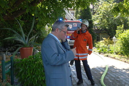 Ein Golfspieler hatte gegen 10.40 Uhr die Flammen entdeckt und die Feuerwehr alarmiert. Anfangs ist unklar, ob die Großeltern noch im Haus sind. Die Helfer suchen mit Atemschutz die Wohnräume ab. Dann wird klar, dass die Senioren bei einem Arzttermin sind.