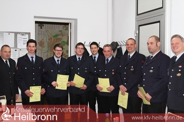 Zahlreiche Beförderungen standen an: So wurde Philipp Gurr zum Feuerwehrmann, Frank Heiss, Maurice Polito und Jonas Hammer zum Oberfeuerwehrmann sowie Michael Fibich, Jens Wörner, Stefan Weybrecht und Markus Gückstock zum Hauptfeuerwehrmann befördert. Auf der noch anstehenden Hauptversammlung in Neckarsulm wird Frank Zimmermann zum Brandmeister befördert werden.