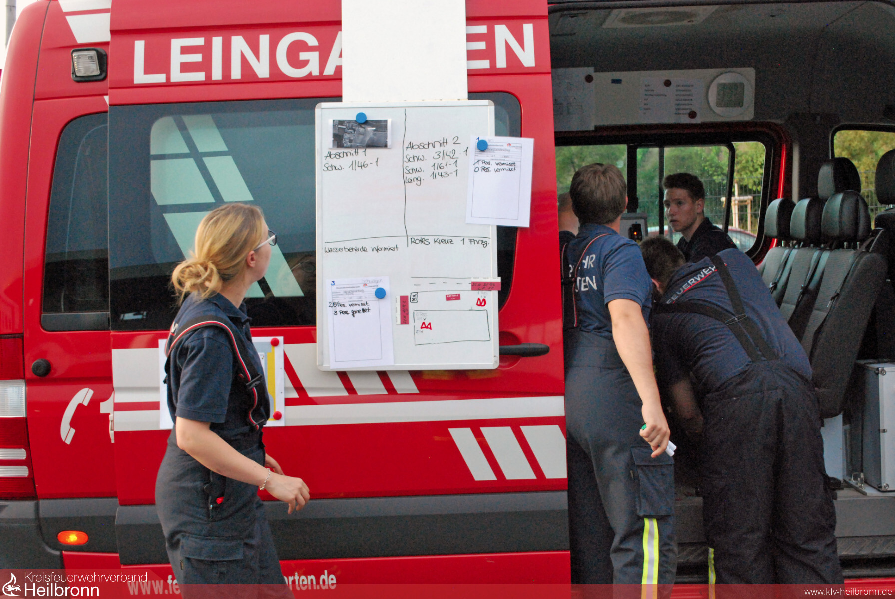 Geübt wurde auch der Aufbau einer Führungsstruktur mit Hilfe des ELW 1 der Leingartener Wehr.