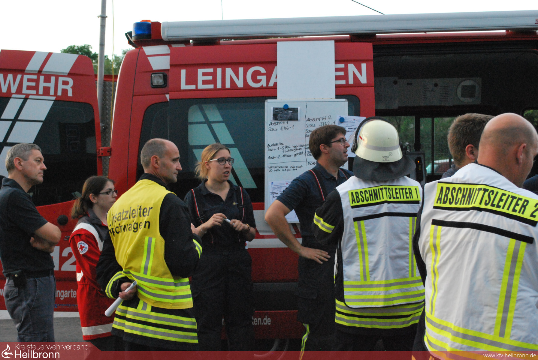 Die Abteilungen Schwaigern und Stetten a.H. übten gemeinsam mit der Feuerwehr Leingarten im Schwaigerner Industriegebiet. Angenommen wurde ein Brand bei dem es mehrere Verletzte gab. Daher war auch der DRK Ortsverein Schwaigern sowie die Schulsanitäter der Leintalschule an der Übung beteiligt.