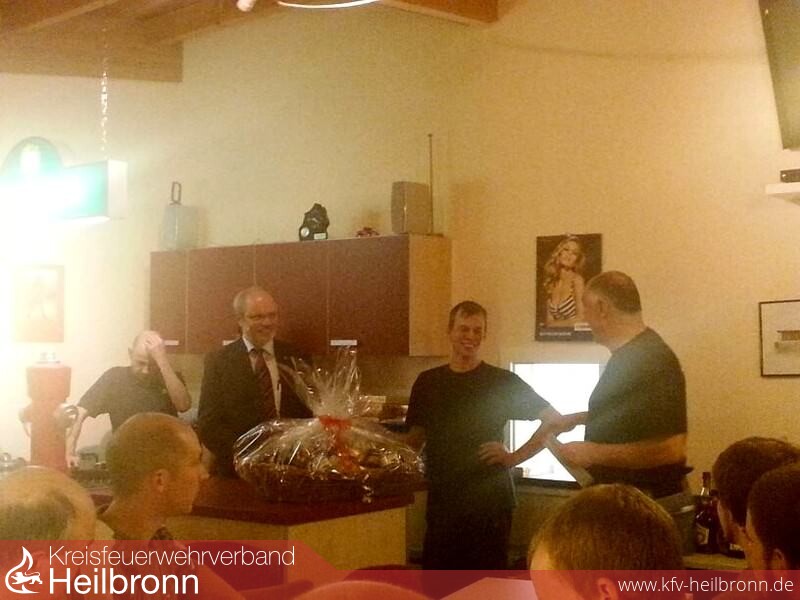 Der neue Abteilungskommandant Patrick Ehrhardt bedankte sich gemeinsam mit seinen Stellvertretern und Bürgermeister Olma bei Wolfgang Schlägel für seine langjährige Arbeit als Kommandant der Abteilung Widdern und nutzte die Gelegengenheit, um ihm im Namen aller Feuerwehrmitglieder ein Dankeschön zu überreichen.
