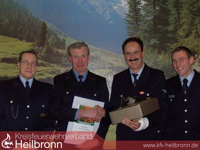Für 50 Jahre Mitgliedschaft in der Abt.-Wehr bzw. in der ehemals selbstständigen Feuerwehr Grombach konnte Kamerad Josef Hemmer mit einem Weinpräsent geehrt werden.