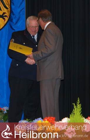 Für die rund 20-jährige Führungstätigkeit als Abteilungskommandant und für seine 41 Jahre im Dienste der Biberacher Feuerwehr, wurde Herbert Kilper zum Ehrenmitglied der Feuerwehr Heilbronn ernannt.(Bild1)