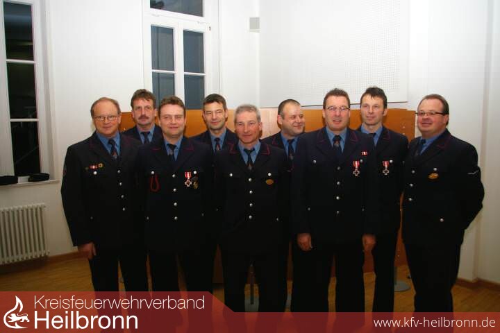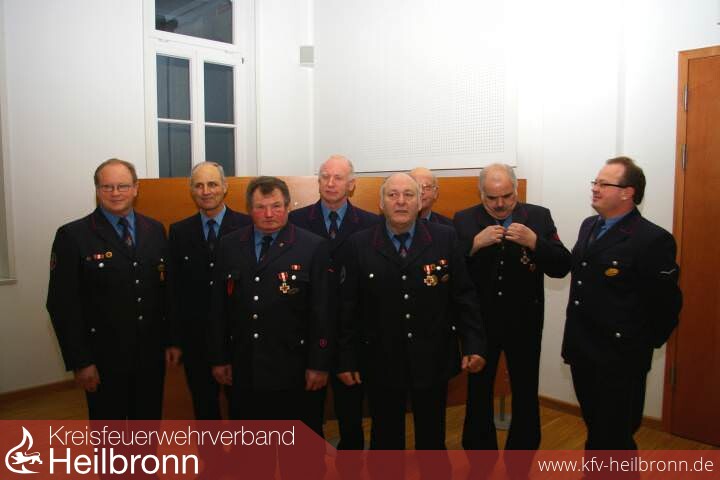 Ehrungen und Beförderungen:Zahlreichen engagierten Feuerwehrmännern konnte Kreisbrandmeister Uwe Vogel zusammen mit Bürgermeister Johannes Hauser ehren. „Erstaunlich viele langjährig Aktive haben die Schwaigerner Abteilungen", stellte Vogel fest. Dies zeugt aber auch von einer guten Kameradschaft und einem harmonischen Klima innerhalb der Wehren. Die Landesehrennadel in Silber für 25 Jahre aktive Dienstzeit erhielten: Georg Sannwald von der Abteilung Massenbach, Martin Dörr, Martin Kümmerle, Matthias Kurz, Jürgen Mayer und Jürgen Wintterle alle aus Stetten sowie von der Abteilung Niederhofen Herbert Sautter und Jürgen Schuster. Als Vorbild und Ansporn für die Jugend stehen die Ausgezeichneten, meinte Hauser in seinen Gratulationsworten. Für 40 Jahre aktiven Dienst durften das goldene Ehrenzeichen sich ans Revers stecken lassen: von der Abteilung Massenbach Kurt Schmied, von Stetten Erich Schilling, Friedrich Schweizer und Walter Weißenstein, sowie Werner Krupp und Otto Schukraft von der Abteilung Niederhofen. Für 60-jährige Zugehörigkeit wurden die Massenbacher Alterzug-Mitglieder Willi Glasbrenner, Willi Schuster und Siegfried Gogel gewürdigt.