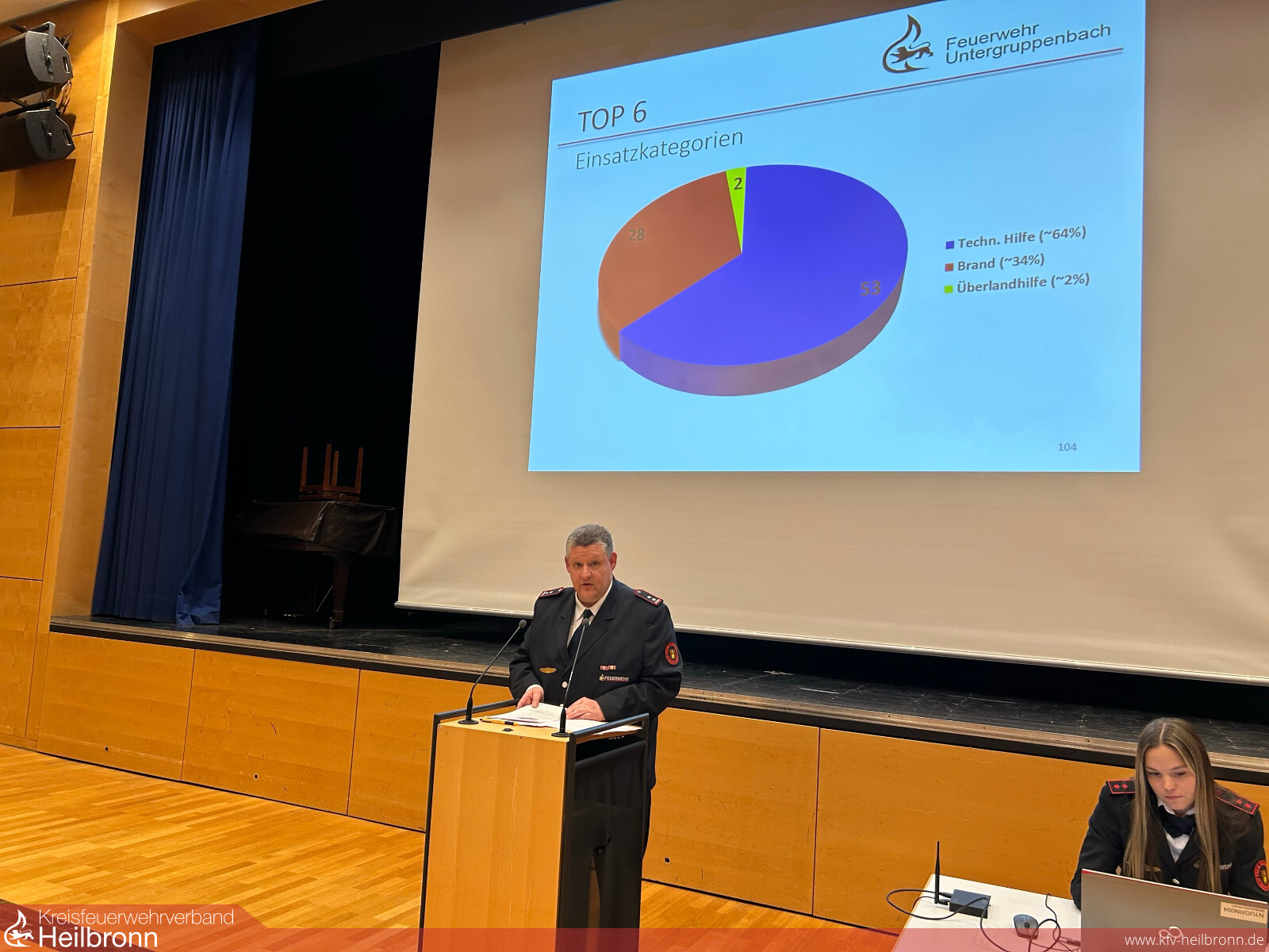 Der stellvertretende Kommandant Andreas Weinert stellte das Einsatzgeschehen des Jahres 2025 vor. Insgesamt wurde die Feuerwehr Untergruppenbach zu 83 Einsätzen alarmiert. Die Einsätze verteilten sich zu rund 72 % auf Werktage und etwa 28 % auf Wochenenden.