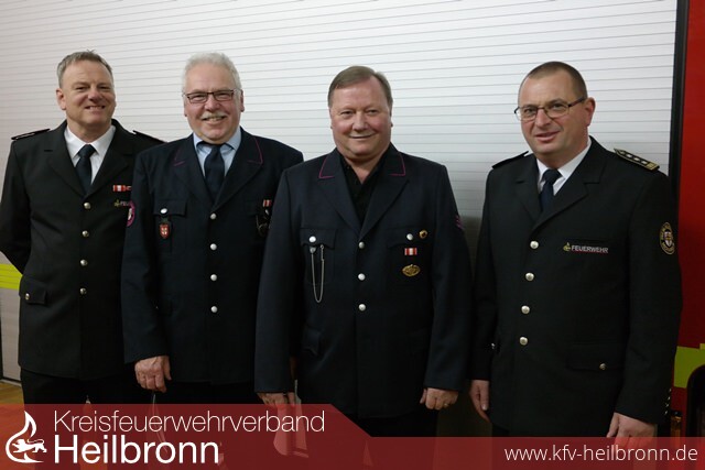 Dass man in 40 Jahren Mitgliedschaft einiges bewegen kann zeigte die Laudatio für Gerhard Scheuermann. Neben zahlreichen Ausbildungen, als Gruppenführer erfolgreich absolvierte Leistungsprüfungen sowie Beförderungen war er bei sehr vielen Einsätzen für das Wohl der Obereisesheimer und Neckarsulmer Bevölkerung an vorderster Front. Über zehn Jahre davon als stellvertretender Abteilungskommandant. Auch aktuell ist er als Leiter der Altersabteilung ein Aktivposten. Mit einem besonderen Dank für die vielen geleisteten Ehrenamtlichen Stunden für die Sicherheit der Allgemeinheit und für unsere Abteilung wünschte er ihm wie auch Richard Schmidt, der ebenfalls für 40 Jahre Mitgliedschaft in der Wehr geehrt, alles Gute. Auch Richard Schmidt hatte neben den Ausbildungen, Einsätzen und Beförderungen als Gerätewart zehn Jahre eine Schlüsselfunktion in der Wehr.
