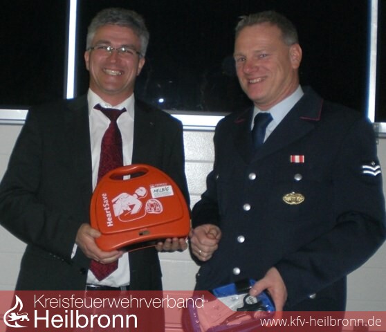 Es wächst immer mehr zusammen, was zusammen gehört. Auch Ortsvorsteher Andreas Gastgeb sieht das gute Zusammenwirken aller Abteilungen als einer der zentralen Punkte der Zukunft, um nicht nur für den demographischen Wandel gut gerüstet zu sein. Ich habe den Eindruck, dass die Gesamtfeuerwehr und die Abteilung Obereisesheim mit einer motivierten Mannschaft und einer engagierten Führung gut aufgestellt ist. Als einen wichtigen Umstand sieht er, dass die Feuerwehrangehörigen von allen Einsätzen wieder gesund zurückgekehrt sind. Und damit das auch so bleibt überreichte er Abteilungskommandanten Werner Seufer einen automatischen externen Defribrilator, der der Abteilung für Übungs- und Einsatzdienste aber auch für öffentliche Veranstaltungen in Obereisesheim von der Stadt zur Verfügung gestellt wird.