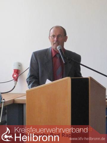 Zur Eröffnung vom offiziellen Teil konnte Abt.-Kmdt. Harald Scholz den Vorsitzenden des Kreisfeuerwehrverbandes Heilbronn, Herr MdL Reinhold Gall begrüßen. In Vertretung von Oberbürgermeister Hans-Heribert Blättgen konnte er dessen Stellvertreter Willi Freymeyer willkommen heißen. Ebenso richtete er einen Willkommensgruß an die anwesenden Mitglieder (Erwin Wagenbach, Rüdiger Auer, Gundi Störner, Gabriele Zimmermann, Franz Fleck) des Gemeinderates. Ausserdem konnte Abt.-Kmdt. Harald Scholz in Vertretung von KBM Uwe Vogel dessen Stellvertreter Heiner Schiefer aus Lauffen seinen Willkommensgruß entbieten. Mit Frau Birgit Stadler (Hochbauamt) und Herrn Roland Deutschmann (Ordnungsamt) konnte er 2 Amtsleiter der Stadtverwaltung herzlich begrüßen. Des weiteren begrüßte er alle benachbarten Feuerwehren mit den jeweiligen Kommandanten und die Abt.-Wehren von Bad Rappenau, angeführt von Kommandant Felix Mann.