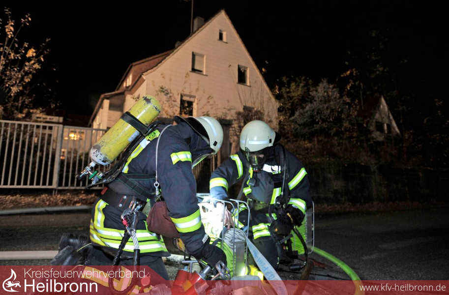 Am frühen Donnerstagabend fahren in großer Eile Feuerwehrfahrzeuge durch die Beilsteiner Hauptstraße. Mit Blaulicht und Martinshorn bahnen sie sich ihren Weg durch den Feierabendverkehr in die Dammstraße. In einem leerstehenden Wohnhaus ist in mehreren Zimmern Feuer ausgebrochen. Kommandant Bernd Kircher hat für diese Übung das Brandszenario mit bengalischem Feuer dargestellt. Er ist auch in der Rolle des Nachbarn, der den Notruf wählt.
