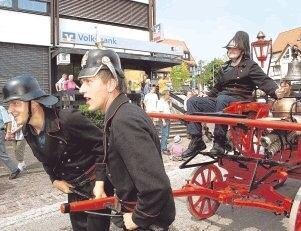 Begeisterung Natürlich gab es da die Männer, die ihre Wehren in Ausgehuniform präsentierten. Aber die meisten wollten nur eines: Mit Wasser in die begeisterte Menge spritzen. Und die zahlreichen Zuschauer, die sich dicht in den schattigen Eckchen drängten, nahmen die kalte Dusche aus den historischen Spritzen mit Jauchzern und Gelächter. Doch was tun, wenn der Wasservorrat zur Neige geht?