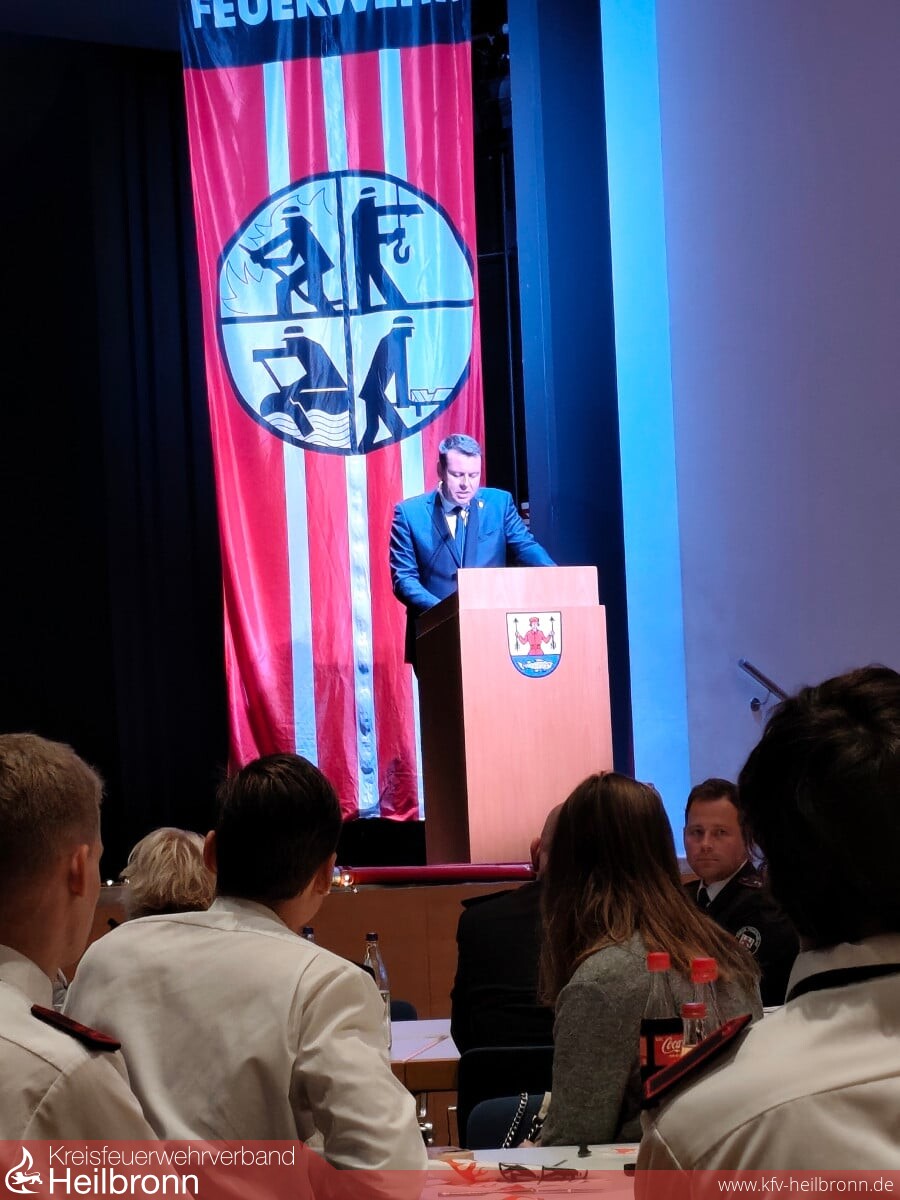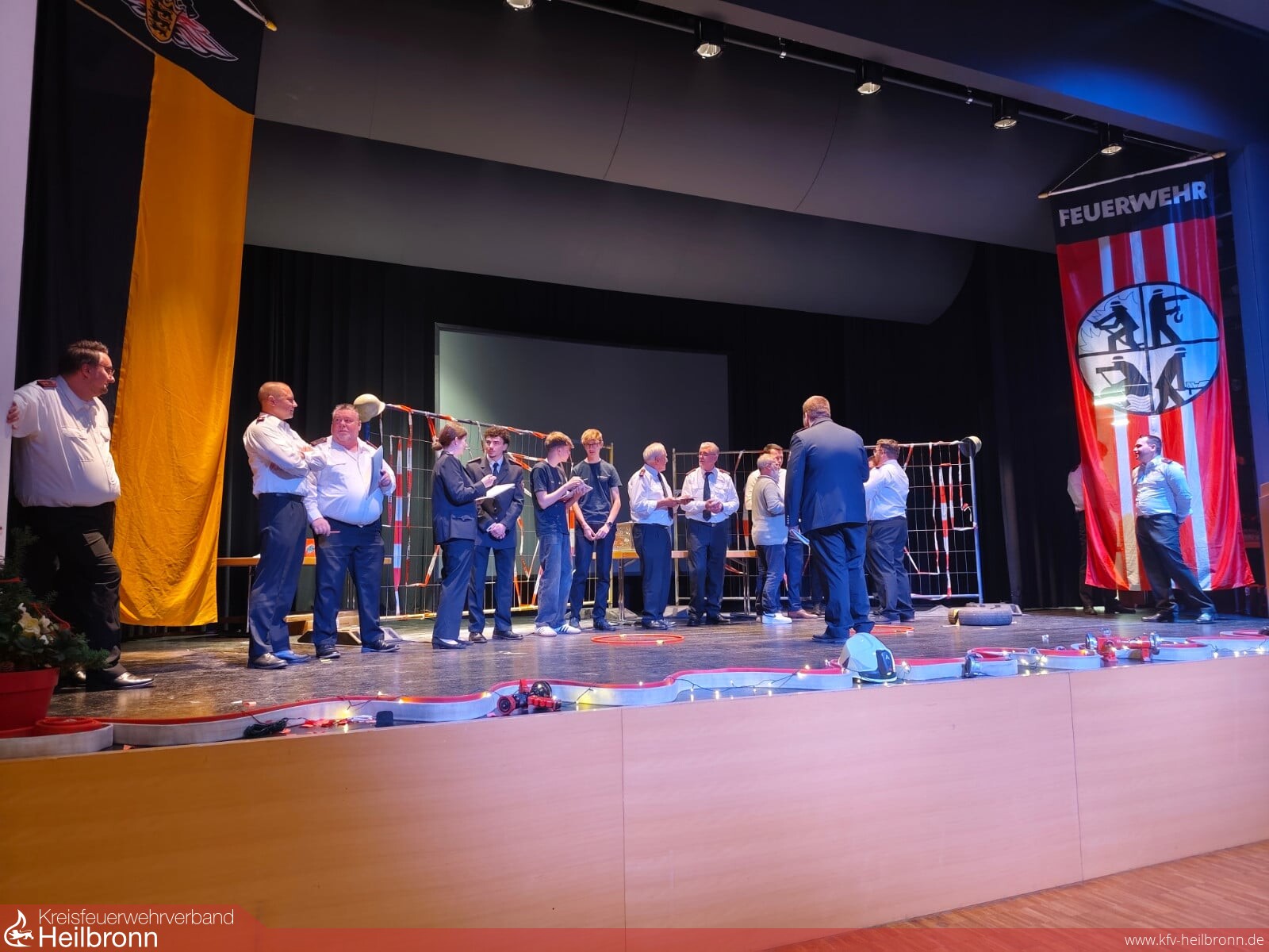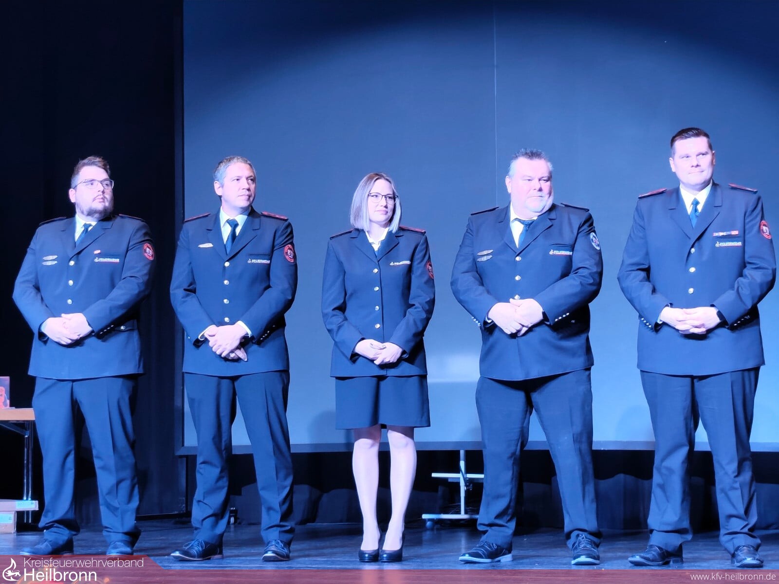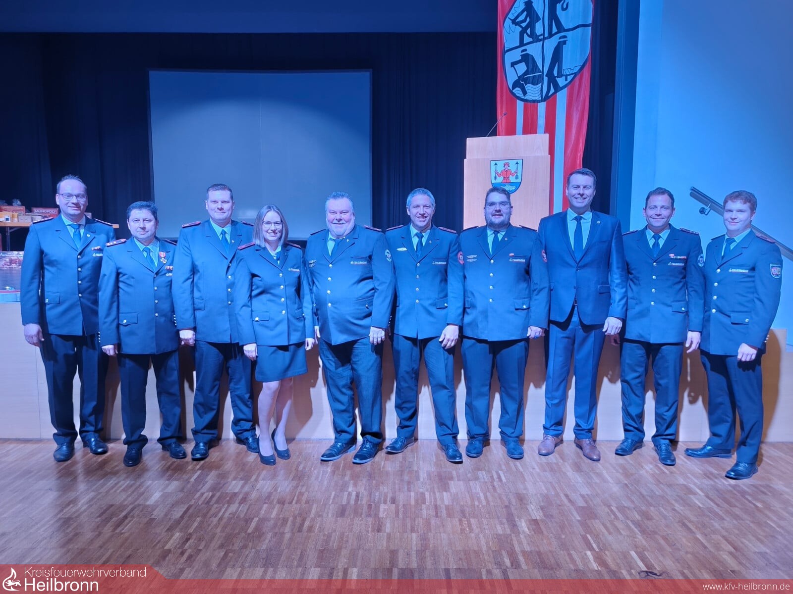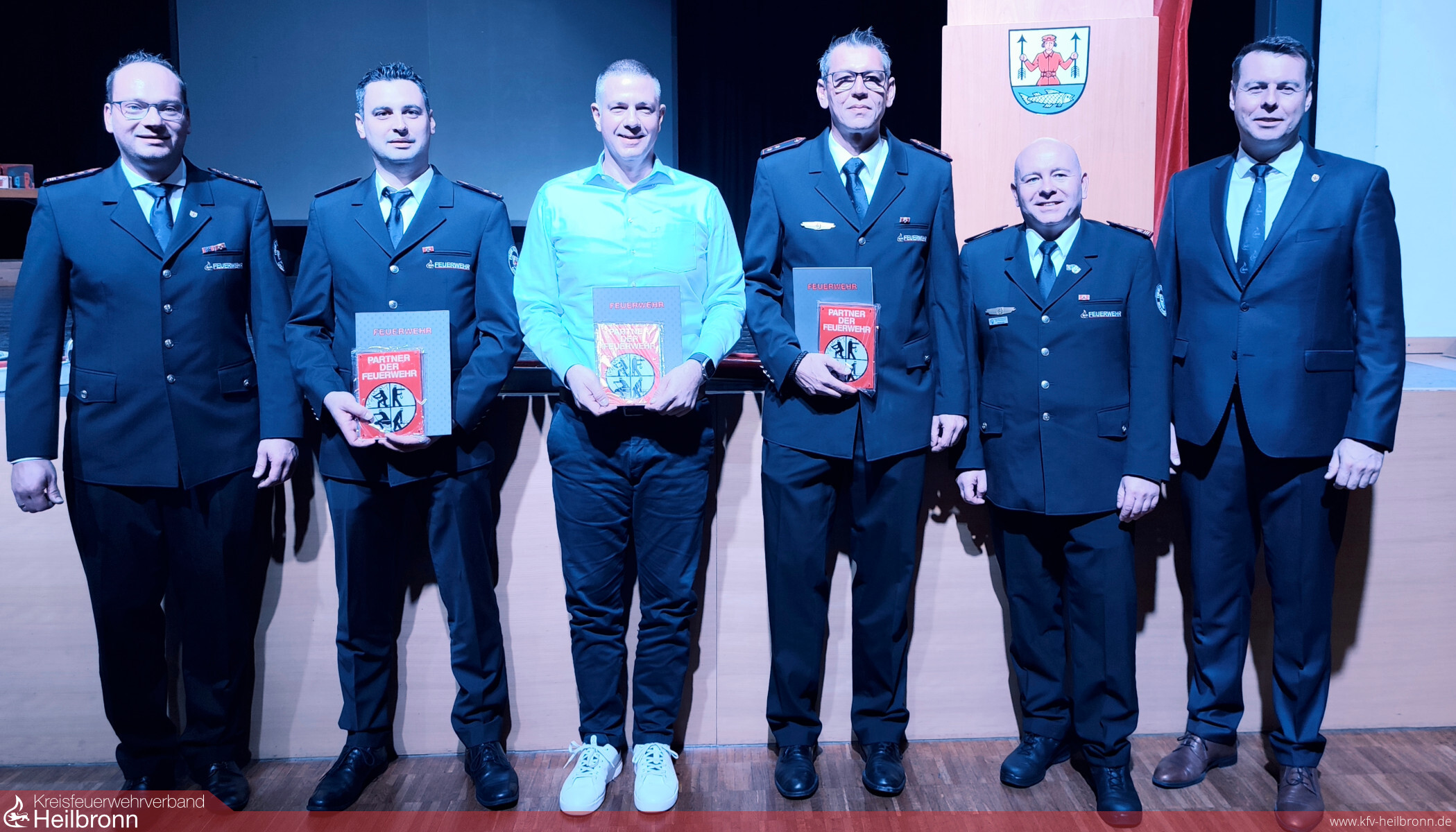 Eine besondere Ehrung erhielten Stefan Deckert und Sven Rathsam. Ihnen wurde die Ehrennadel des Kreisfeuerwehrverbands Heilbronn für ihre langjährigen und besonderen Verdienste verliehen. Als Partner der Feuerwehr wurden die Firmen csi entwicklungstechnik GmbH, Elektro Glaser und Enderer GmbH geehrt.
