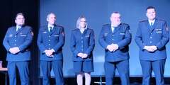 Mit der Ehrennadel der Jugendfeuerwehr BW in Silber wurden Thomas Feeser, Andre Streuer, Julia Herold und Kevin Heise. Auch Jugendwart Patrick Fiedler erhielt diese Ehrung und wurde damit überrascht.
