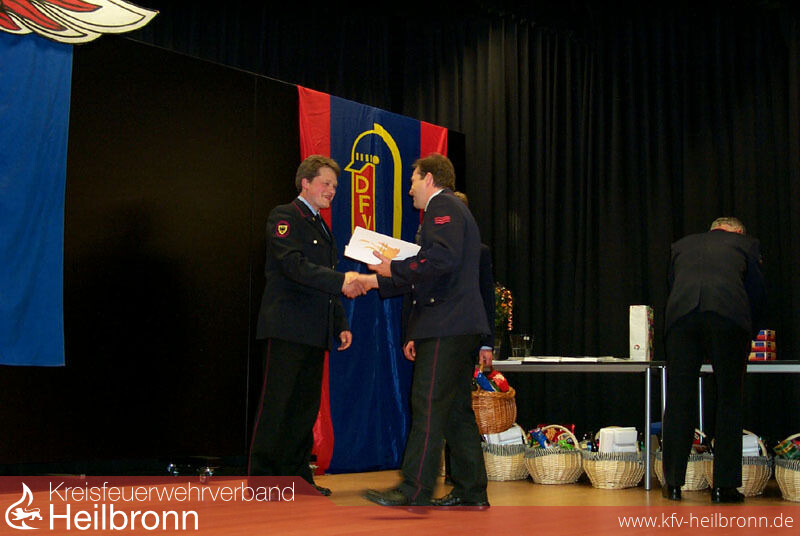Für ein halbes Jahrhundert Feuerwehrdienst wurden in diesem Jahr Helmut Beck, Helmut Becker, Helmut Fackler, Klaus Fischer, Karl Heinz Friedrich, Kurt Gruner, Richard Kautz, Franz Schöbel, Franz Tutsch und Günther Ullrich geehrt. Der Stellvertretende Bürgermeister der Stadt Bad Wimpfen, Dr. Bernhard Lasotta, führte die Ehrung durch. Er dankte den Geehrten für ihre zuverlässige und wertvolle Arbeit, die bis heute währt.