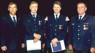 Für 25 Jahre aktiven Feuerwehrdienst ehrte er die Feuerwehrmänner Hermann Schmelcher und Leonhard Barth mit dem Feuerwehrehrenkreuz des Landes Baden-Württemberg in Silber und Urkunden, ferner Kommandant Kurt Semen für 40 Jahre aktiven Feuerwehrdienst mit dem Feuerwehrehrenkreuz des Landes Baden-Württemberg in Gold und Urkunde. Die Geehrten erhielten auch den Wappenteller der Stadt, Gutscheine für einen Aufenthalt im Feuerwehrerholungsheim Titisee und Geschenkkörbe.