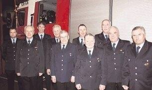 Acht Feuerwehrangehörige wurden von Bürgermeister Krüger befördert. Zusammen mit dem stellvertretenden Kreisbrandmeister zeichnete er 13 langjährige Feuerwehrleute aus, darunter nicht weniger als sechs, die der Truppe seit 60 Jahren angehören.