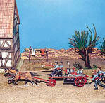 Eine ruhige Hand und gute Geschichtskenntnisse braucht Peter Bach, wenn er seine Zinnfiguren bemalt und liebevoll zu Szenen arrangiert. 25 Dioramen mit rund 400 kulturhistorischen Figuren sind seit Dienstag und noch bis zum 19. Oktober von ihm in der Volksbank Möckmühl ausgestellt.