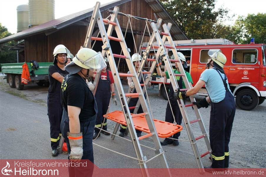Keine klare vorgegebene Vorgehensweise, Arbeiten mit unterschiedlichsten Gerätschaften und Teamwork stehen bei „Knobelaufgaben“ in der Feuerwehr im Vordergrund. Zwei verschiedene Aufgaben mussten zwei Gruppen der Freiwilligen Feuerwehr Neudenau in der vergangenen Übung meistern. Die erste Aufgabe bestand darin, eine „Sitzbank mit Rückenlehne“ aus Geräten und Materialien aus dem Tanklöschfahrzeug bauen. Bevor aber die achtköpfige Mannschaft einfach drauf los baut, musste ein kurzer schriftlicher Arbeitsplan von der Gruppe erstellt werden, erst danach durfte mit den Arbeiten begonnen werden. Das zweite Team hatte die Aufgabe, eine „freistehende und freischwingende Schaukel“ aus Materialien des Gerätewagens zu konstruieren. Nach maximal 40 Minuten sollten die Ergebnisse sichtbar sein und natürlich auch benutzbar. Beiden Mannschaften gelang dies in kreativer Art und Weise. Da die Knobelaufgaben gut ankamen, wechselten nun die beiden Mannschaften und gingen an die jeweils andere Aufgabe.