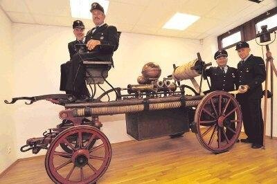 Sei's drum: Die Patentsaugfeuerspritze, wie sie richtig heißt, war ein sehr brauchbares Gerät. Nicht nur wegen des Pumpwerks mit den beiden Messing-Zylindern. Dass sie sowohl einen Saugwind- wie auch einen Druckwindkessel besaß, machte sie besonders effektiv. „Die alten Geräte konnten nur stoßweise Wasser spritzen“, erklärt Joachim Haase. „Mit dieser Technik aber stand der Schlauch erstmals dauernd unter Druck und lieferte kontinuierlich Wasser.“ Bis zu 350 Liter in der Minute.