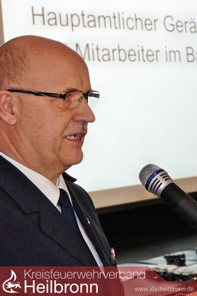 Kreisbrandmeister Uwe Vogel, welcher direkt von einem Großbrand in Löwenstein nach Neuenstadt geeilt war, überbrachte ebenfalls die Grußworte des Verbandsvorsitzenden Reinhold Gall MdL. Er berichtete über die anstehende Erweiterung der integrierten Leitstelle in Heilbronn und von der neuen Einsatzleitsoftware welche vom Landratsamt mit überarbeitet wurde. Vogel bedankte sich bei der Feuerwehr und Kommandant Schaffroth, welcher auch den Führungsstab des Landkreises angehört, für die Untersützung in 2016.