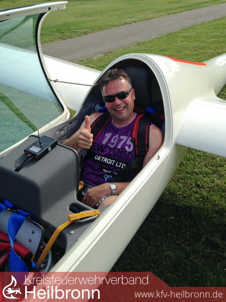 Nachdem alle wieder vereint waren, gab es zunächst in der großen Flugzeughalle einen kleinen Sektempfang, wobei das ebenfalls angebotene Mineralwasser und weitere Erfrischungsgetränke deutlich mehr Absatz fanden. Hierbei wurden die Feuerwehrangehörigen vom FSV Vorstand Manfred Henninger herzlichst begrüßt und mit einem halbstündigen Power-Point-Vortrag über das Vorgehen und in die UV-Vorschriften bei abgestürzten oder notgelandeten Segel- bzw. Motorflugzeugen eingewiesen. Diesem interessanten Vortrag folgte eine intensive Besichtigung der am Standort vorhandenen Flugzeuge, mit welchem der Verein in einer Fluggemeinschaft mit den Fliegern aus Öhringer an jedem Wochenende auf Flugkilometer in der der 2. Bundesliga gehen.