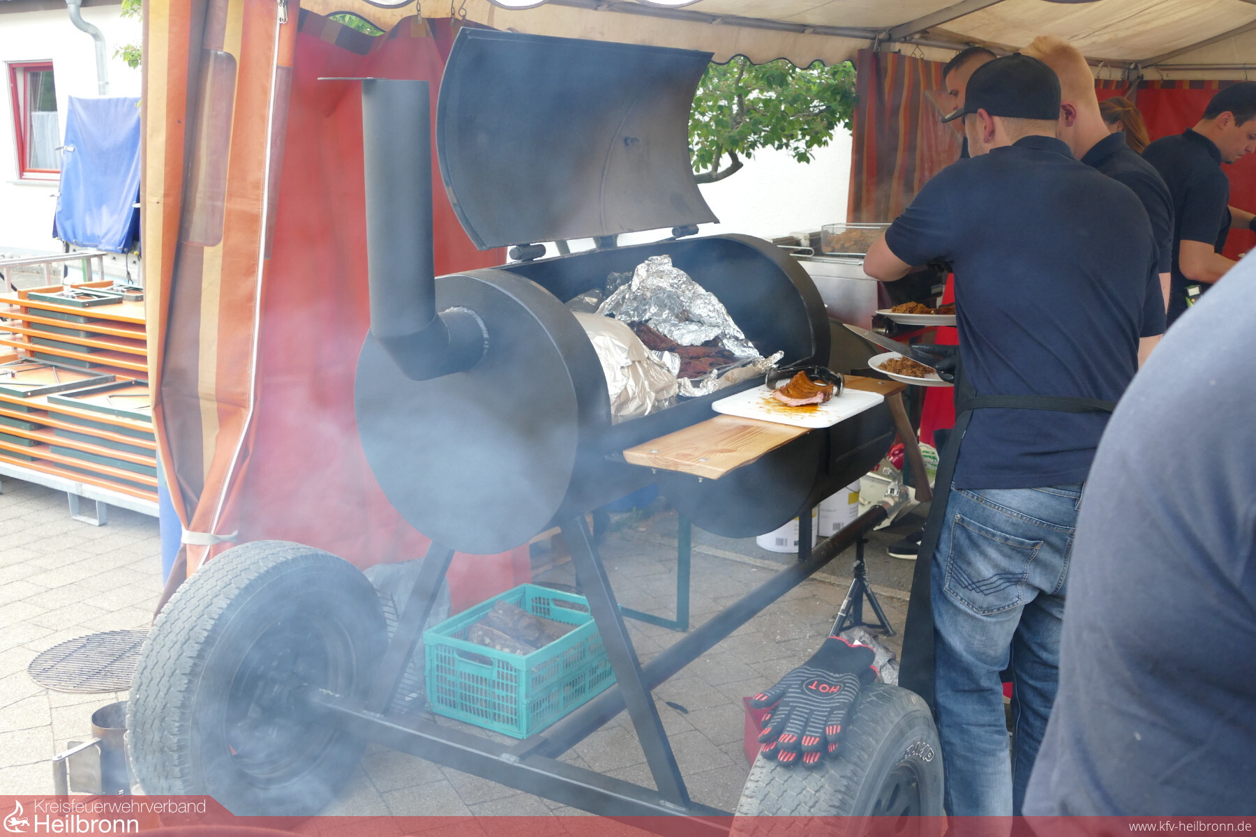 Gegen 19 Uhr ca. traf die Gruppe wieder am Feuerwehrhaus ein, wo bereits das Abendessen wartete. Serviert wurde ein stilgetreues American BBQ bestehend aus Pulled Pork, Spare Rips, Cole Slaw, Barbeque Beans, uvm.