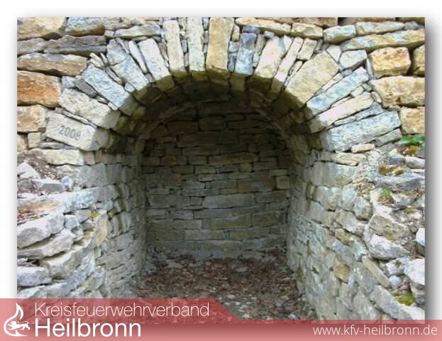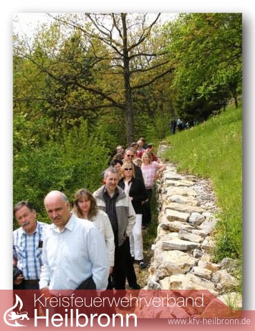 Einen guten Abschluss fand man dann am, ebenfalls von ihm wieder aufgebauten, ehemaligen Kalkofen. Dort hatte die FF Roigheim mit Brezeln und Erfrischungen aufgewartet. Hans Zweig, welcher für sein großes Engagement bereits die Staufermedaille verliehen bekam, gab noch die letzten Erklärungen zu diesem Gebiet ab und erhielt für die knapp zweistündige Führung viel Applaus und ein Weinpräsent. Anschließend begrüßte der Roigheimer Feuerwehrkommandant Nico Saur „seine“ Gäste auf das herzlichste in Roigheim willkommen und lud, nach dem Rückmarsch, zu anschließendem Kaffee und Kuchen in das Feuerwehrhaus ein.