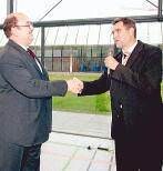 Foto: Landrat Detlef Piepenburg (rechts) gratuliert dem neuen Kreisbrandmeister Uwe Vogel. (Foto: Dirks)