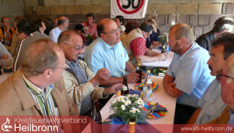 Es herrschte ein stetiges Kommen und Gehen: Von privaten Bekannten, vom Kreisjugendfeuerwehrwart Knut Steinbauer, über Vertreter der Feuerwehr Heilbronn mit Eberhard Jochim, bis zum Bezirksbrandmeister Frieder Lieb waren die Feuerwehren präsent. Der Reigen der Gäste aus dem Raum Heilbronn wurde am Vormittag durch politische und kommunale Prominenz - vertreten durch Reinhold Gall MdL und Lothar Oheim, Bürgermeister aus Gundelsheim geschlossen.