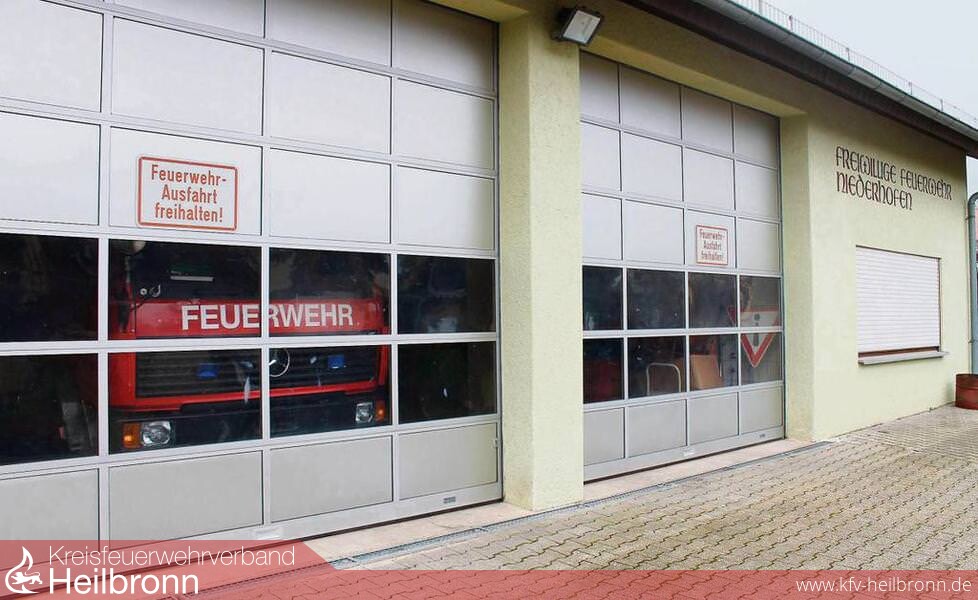 Bild: Das Feuerwehrhaus Niederhofen wird erweitert und saniert. Dabei müssen die alten Sektionaltore ausgetauscht und erneuert werden. (Foto: Friedhelm Römer)