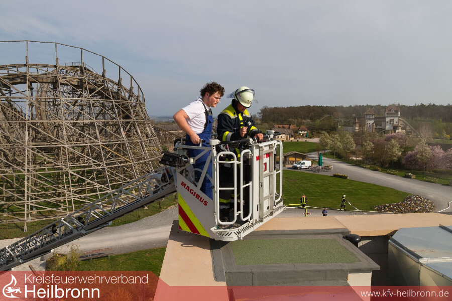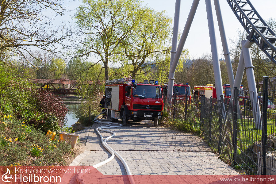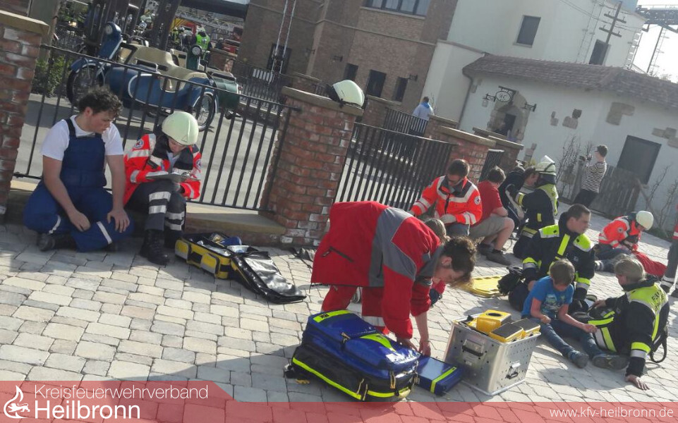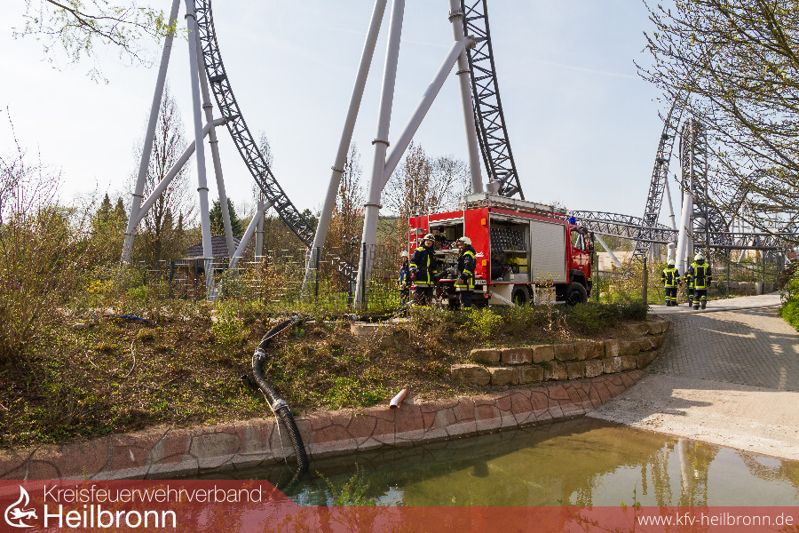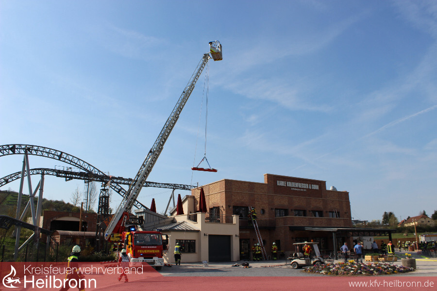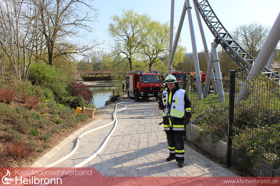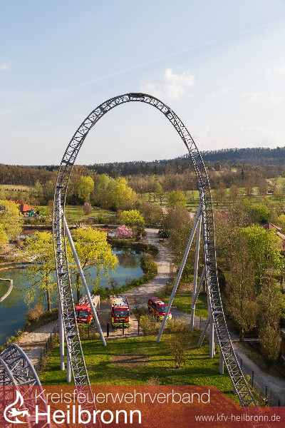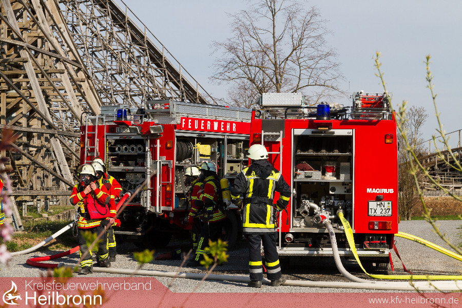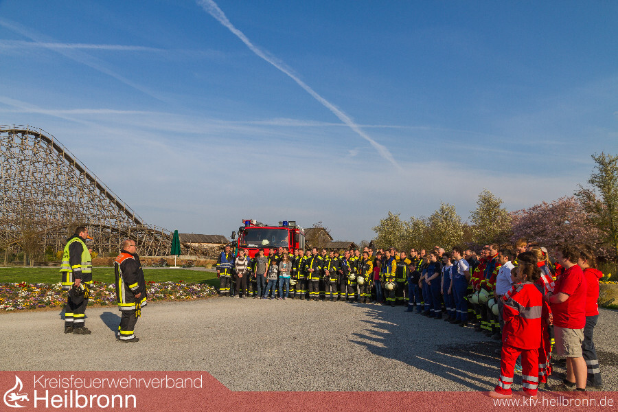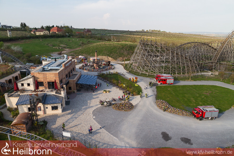 Eine gemeinsame Übung der Freiwilligen Feuerwehren Cleebronn, Brackenheim, Bönnigheim und Freudental zusammen mit dem DRK-Ortsverein Brackenheim brachte am 1. April bereits eine Woche vor Saisonbeginn buntes Treiben in den Erlebnispark Tripsdrill. Vier Feuerwehren aus zwei Landkreisen und der Rettungsdienst übten in Europas beliebtesten Freizeitpark Hand in Hand den Ernstfall.