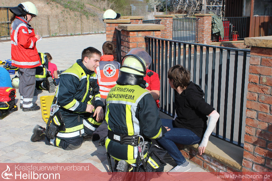 Die Verletzten wurden nach der Rettung an die Kräfte des DRK OV Brackenheim übergeben. Die Verletzten wurden erstversorgt und fiktiv ein Weitertransport ins Krankenhaus vorbereitet. Dabei wurden diese von Kräften der Feuerwehr Brackenheim tatkräftig unterstützt.