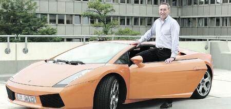 Foto: Klaus Czernuska hat sich mit einem Lamborghini auf und davon gemacht. Das Beweisfoto zeigt ihn mit dem Sportwagen vor dem Landratsamt Heilbronn.