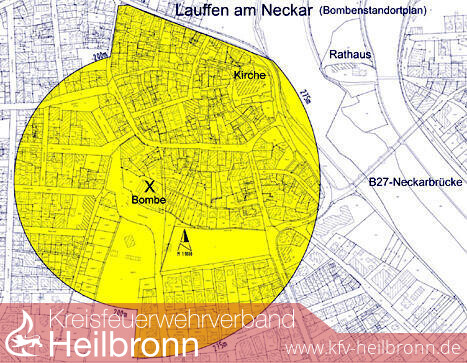 Nächste Woche werden die Spezialisten mit der Suche beginnen. Sollte eine Entschärfung vor Ort nötig sein, müssen die Anwohner ihre Häuser und Wohnungen verlassen. Dafür ist die Evakuierung im Bereich von 200 Meter in westlicher Richtung und 275 Meter in östlicher Richtung um das Seidel-Gelände erforderlich, teilte die Stadtverwaltung Lauffen heute mit.