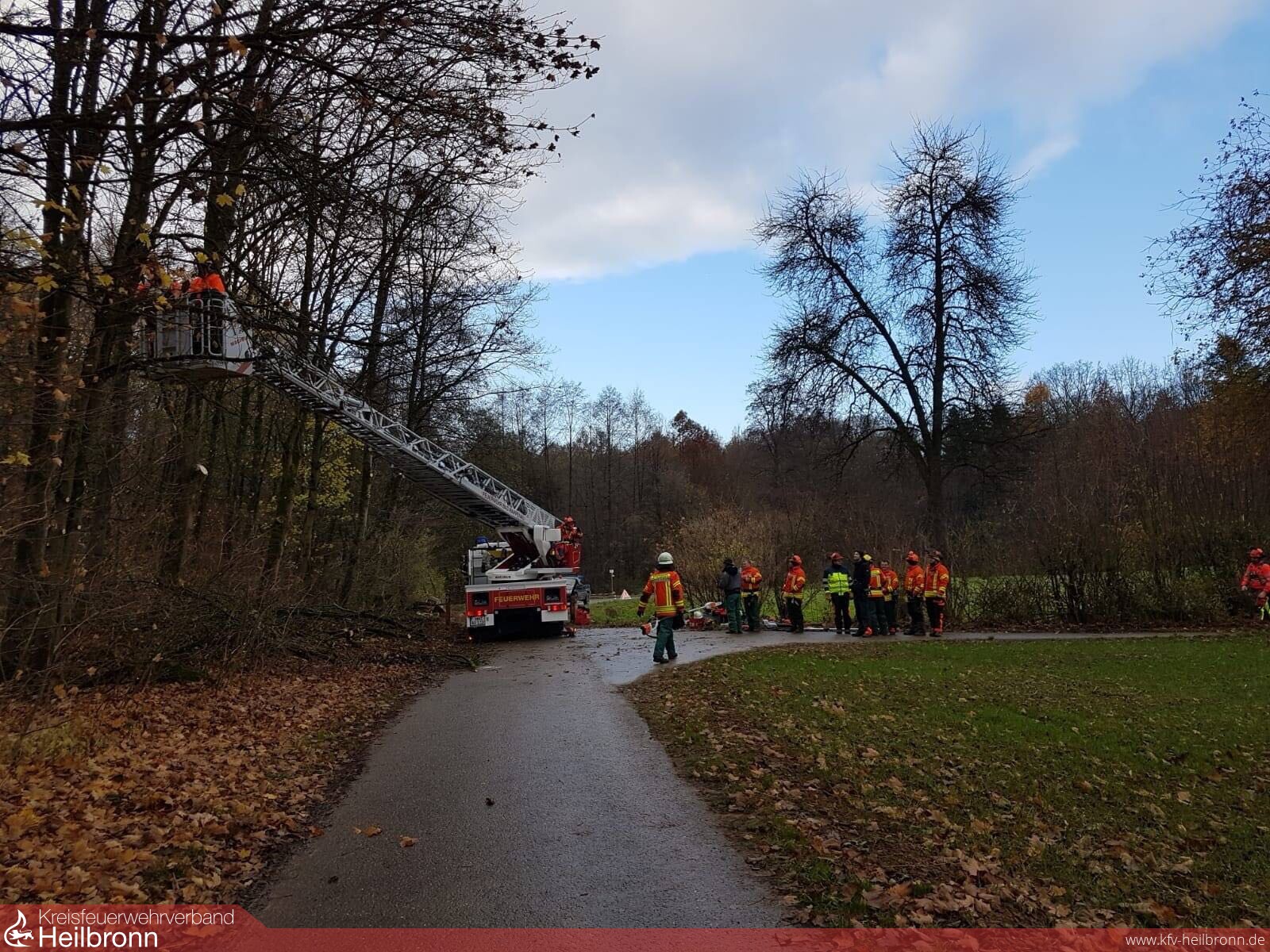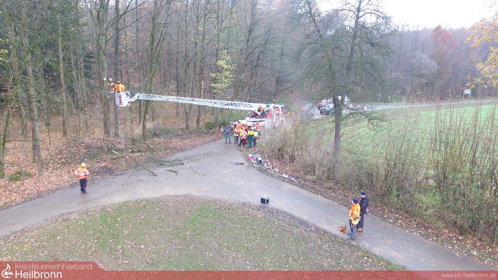 Am Freitag, 23. November und Samstag, 24. November trafen sich 13 Kameraden der Abteilung Bad Rappenau (alles ausgebildete Motorsägenführer bzw. Drehleitermaschinisten), um am weiterführenden Motorsägen Lehrgang „Modul C – Arbeit mit Motorsägen in Arbeitskörben von Hubarbeitsbühnen und Drehleitern, ohne stückweises Abtragen von Bäumen“ gemäß DGUV-Information 214-059 „Ausbildung für Arbeiten mit der Motorsäge und die Durchführung von Baumarbeiten“ teilzunehmen.