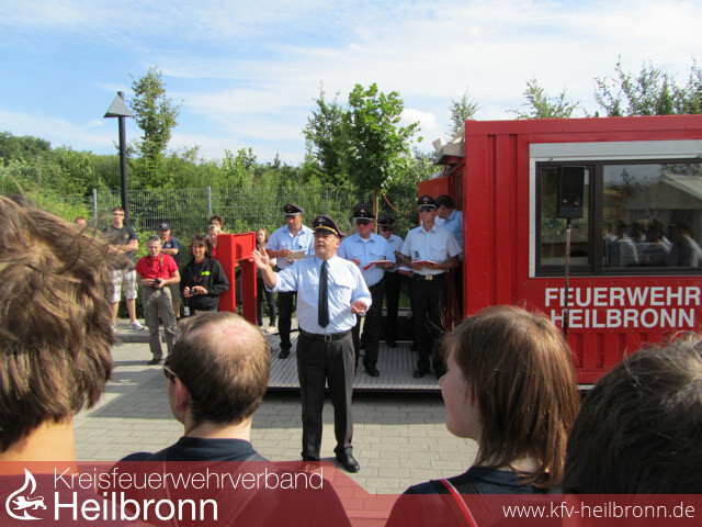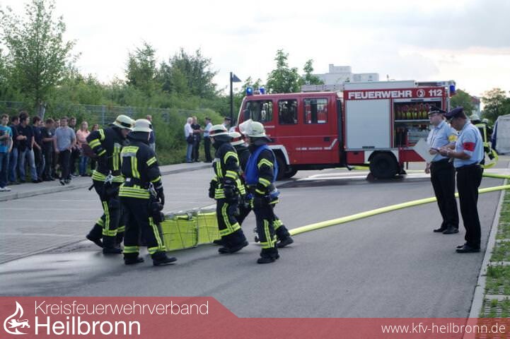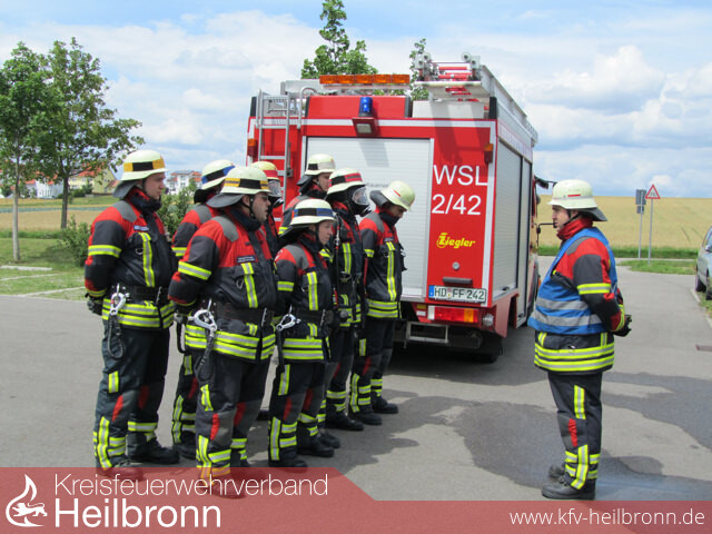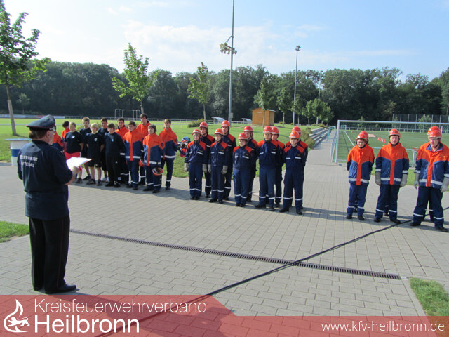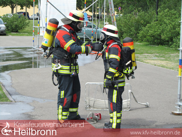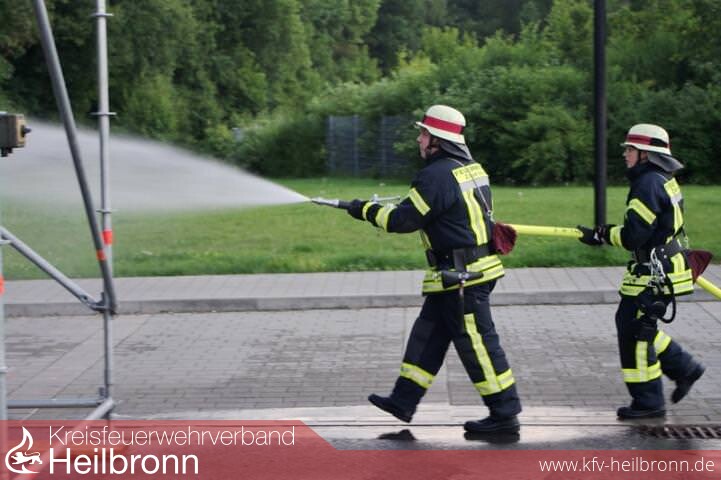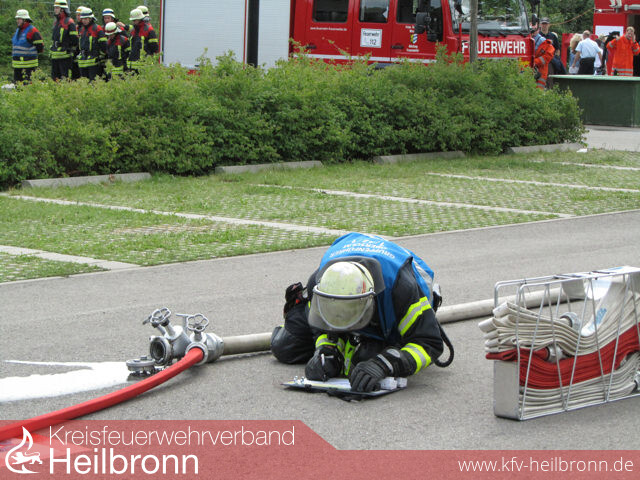Bild 1: Eppingen beim Löschangriff GoldBild 2: Wiesloch, einer der Teilnehmer außerhalb des Kreises Heilbronn, beim Löschangriff GoldBild 3: parallel stattfindende Jugendflamme-AbnahmeBild 4 + 5: Zaberfeld bei der Bronze-PrüfungBild 6 + 7: Nordheim/Brackenheim bei der technischen Hilfeleistung für GoldBild 8: die Schiedsrichter bei der ArbeitBild 9: Reinhold Gall übergibt das bronzene Leistungsabzeichen an die Gruppenführer aus Zaberfeld...Bild 10: ...und das goldene Leistungsabzeichen an den Webmaster des Kreisfeuerwehrverbandes Marcel Karger, hier in seiner Funktion als einer der beiden Gruppenführer der kombinierten Gruppen aus Nordheim und Brackenheim.ab Bild 11: weitere Impressionen von den Leistungsprüfungen