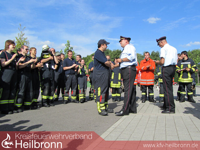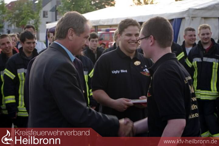 Kreisbrandmeister Uwe Vogel sowie seine Stellvertreter Hermann Jochim und Heiner Schiefer gratulierten den erfolgreichen Gruppen und zollten ihnen Respekt für die oft monatelangen Vorbereitungen. Der Vorsitzende des Kreisfeuerwehrverbandes Reinhold Gall, als Innenminister zugleich \"oberster Dienstherr\" der Feuerwehren in Baden-Württemberg, überreichte am Freitagabend stellvertretend den jeweiligen Gruppenführern das Leistungsabzeichen. Auch er dankte den Gruppen für ihr Engagement.