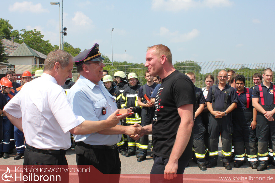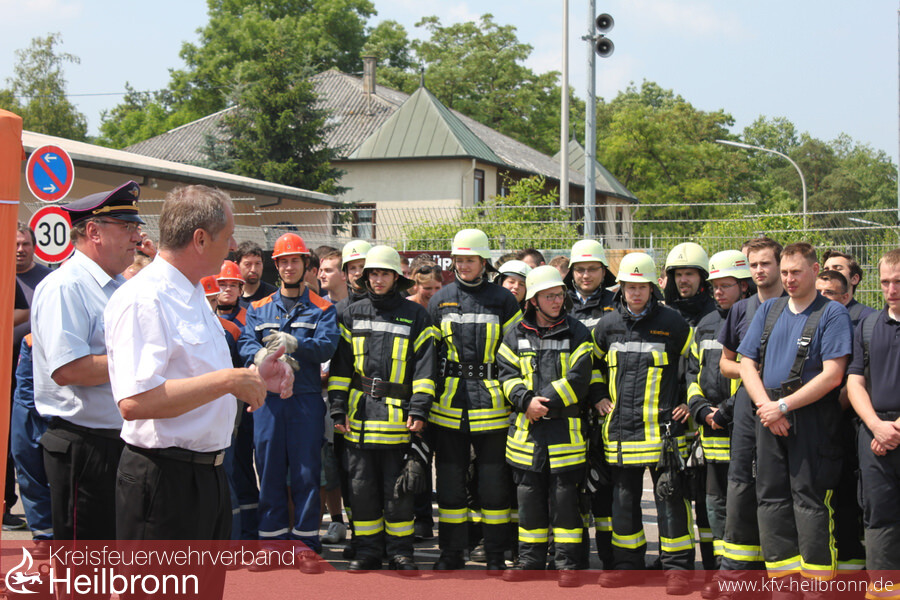 Kreisbrandmeister Uwe Vogel zeigte sich sichtlich erfreut über die hohe Beteiligung und die relativ geringe Fehleranzahl in diesem Jahr: "Leistungsprüfungen wie diese zeigen die Leistungsfähigkeit der Feuerwehren im Landkreis Heilbronn". Auch Verbandsvorsitzender Reinhold Gall freute sich bei einem kurzen Grußwort während der Verleihung der Abzeichen über den hohen Ausbildungsstand der Wehren im Verbandsgebiet.