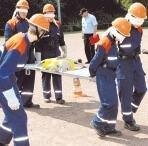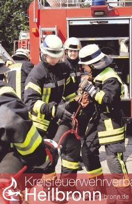 Jugendflamme Auf dem benachbarten Tennenplatz ist die Feuerjugend beim Leistungsabzeichen "Jugendflamme" aktiv: 26 Teams aus der Region, die alle bestehen. 800-Meter-Lauf, Weitsprung, Hindernisparcours, Fachwissen und Praxis sind gefordert. Beim Parcours werden den vier Trägern einer Trage die Augen verbunden. Der Gruppenführer dirigiert sie beim Blindspiel durch Hindernisse. "Sie müssen sich blind auf ihren Gruppenführer verlassen", sagt Kreisjugendfeuerwehrwart Knut Steinbauer aus Stebbach. Beim Schaumangriff hat sich Natascha Beer aus Offenau um den Schaum gekümmert. Ihr Fazit: "Es ist gut gelaufen."