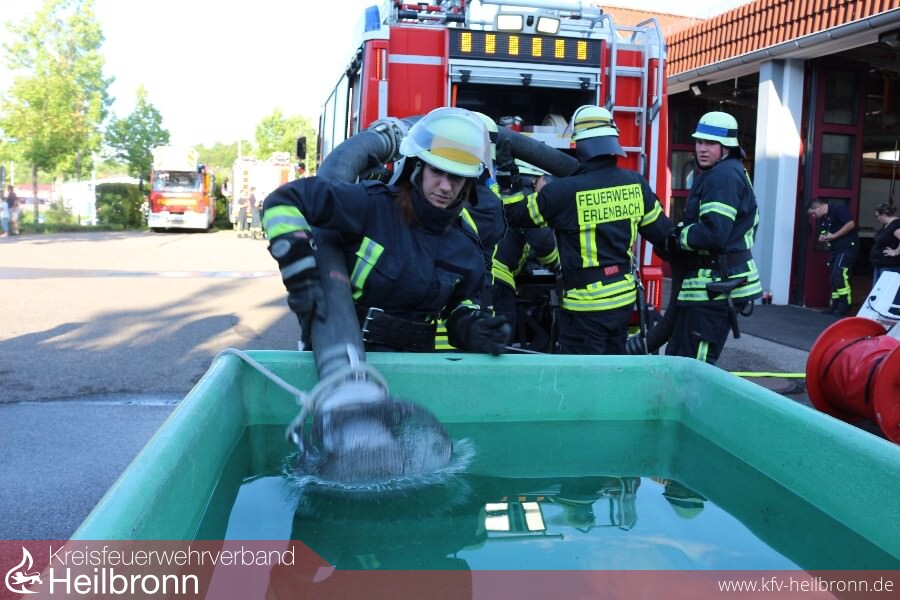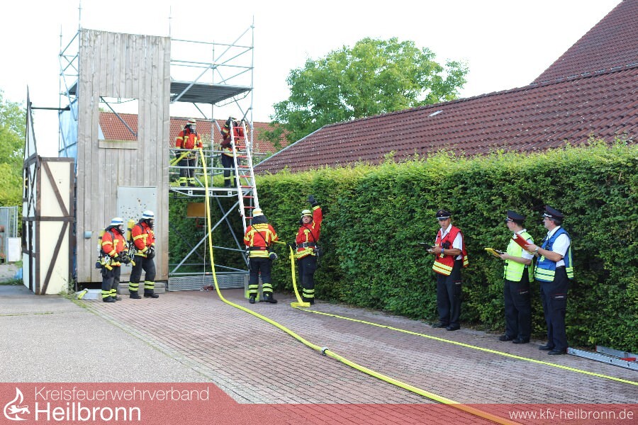 Bei der Wiederholungsprüfung auf dem Gelände der Freiwilligen Feuerwehr Brackenheim waren am Freitagabend sieben Gruppen erfolgreich und konnten „etwas verspätet“ von Kreisbrandmeister Uwe Vogel das Leistungsabzeichen in Silber (5 Gruppen) und Gold (2 Gruppen) entgegennehmen. Vor zwei Wochen in Bad Friedrichshall hatte es leider nicht gereicht oder man startete wie die Erlenbacher für einen Kameraden der verletzungsbedingt nicht teilnehmen konnte einfach noch einmal.