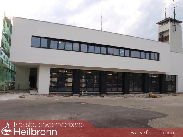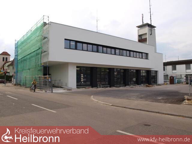 Dieser Tage ist die Hülle gefallen, die Baugerüste sind weg: In schlicht weißem Gewand, aufgelockert durch markante langgestreckte Fensterbänder und einige weitere Öffnungen mit dunklem Rahmen präsentiert sich jetzt das neue Gebäude für die Integrierte Leitstelle auf dem Gelände der Heilbronner Hauptfeuerwache.