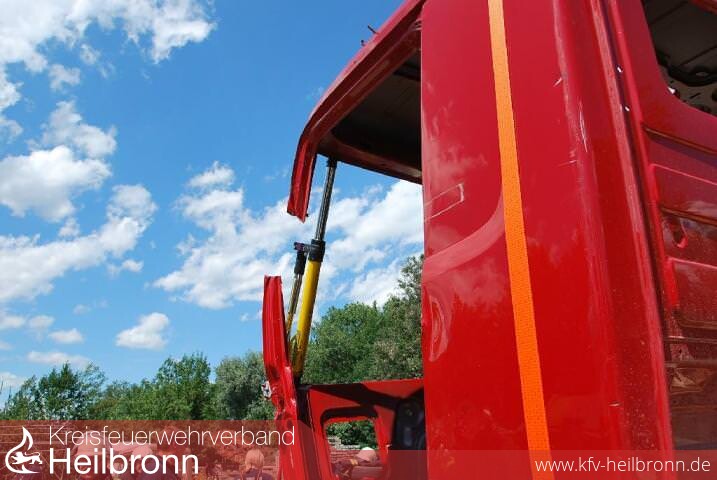 Im weiteren Verlauf konnten die Seminarteilnehmer grundlegende Punkte anhand zweier aktueller Fahrzeuge in Augenschein nehmen. Hierbei lag der Fokus unter anderem auf Lage und Anordnung der Batterien sowie der Dieseltanks. Ein Stillsetzen des Fahrzeugmotors mittels eines CO2-Löschers konnte ebenso wie die Sicherung der LKW Kabine mit Spanngurten, praxisnah geübt werden. Nach einer kurzen Stärkung wurde an LKW-Rohkarossen nun auch das Spreizen und Schneiden mit den hydraulischen Rettungsgeräten geübt. Hierbei war die richtige Schnitttechnik sowie überlegtes Einsetzen von Rettungszylindern Hauptaugenmerk der Ausbildungseinheit. Natürlich wurden auch alternative Rettungsgeräte vorgestellt und in der Praxis betrieben.