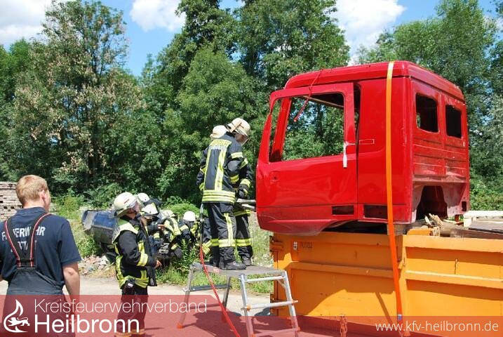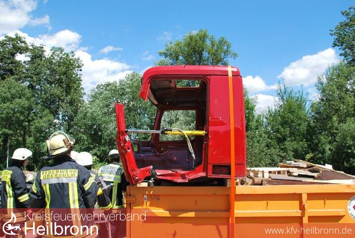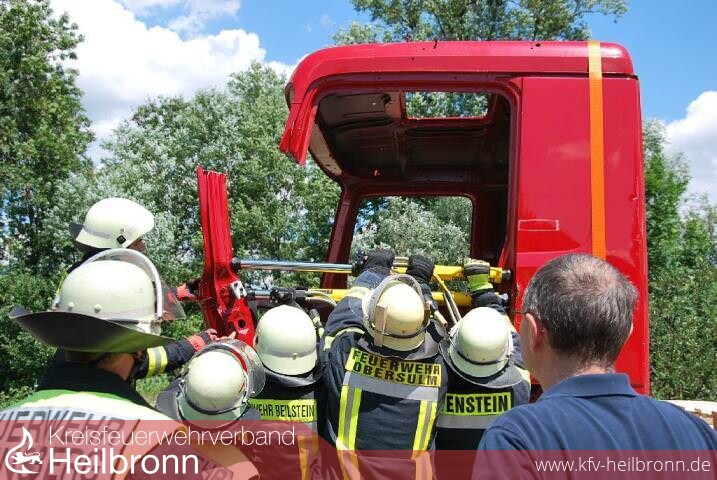 Die Rettung von eingeklemmten Personen aus einem LKW ist im Vergleich zu einem PKW viel aufwändiger. Aufgrund der deutlich größeren Abmessungen und Gewichte gegenüber PKWs, werden die Feuerwehrangehörigen bei einem LKW-Unfall vor größere Anforderungen gestellt. Auch gilt es im Einsatz die besondere Fahrzeugtechnik der LKWs zu beachten. Um sich auf solche Gegebenheiten besser vorzubereiten, absolvierten jetzt Einsatzkräfte der Freiwilligen Feuerwehren aus Abstatt, Beilstein, Obersulm, Löwenstein und Ellhofen ein LKW-Seminar bei der Freiwilligen Feuerwehr in Weinsberg.