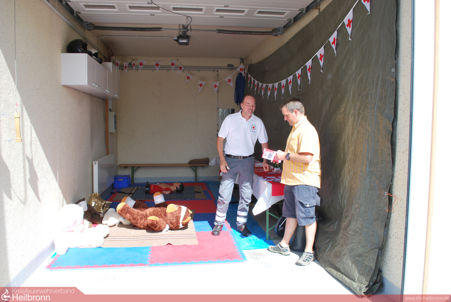 Mund zu Mund Der DRK-Ortsverein hatte in seiner Garage nebenan ein Bärenhospital eingerichtet. Kinder und Erwachsene durften an einer Puppe Mund-zu-Mund-Beatmungen und Herzdruck-Massagen durchführen. Im Ernstfall sind das lebensnotwendige Maßnahmen, an denen sich auch Leon (5) unter Anleitung des Sanitäters Knut Kubsch aktiv beteiligte.