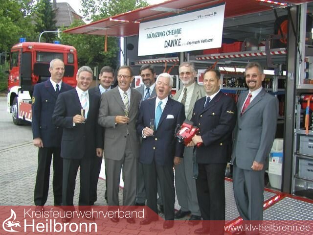 „Münzing sagt danke“ steht auf dem Plakat. Danke an die Stadt, wie Geschäftsführer Michael Münzing ausführte. Und danke an die Feuerwehr, deren „unzählige wertvolle Ratschläge“ mitgeholfen hätten, dass beim Betrieb der Chemieanlagen erst gar nichts passiert. Michael Münzing führt das 1830 gegründete Unternehmen mit derzeit rund 120 Beschäftigten in Heilbronn als ein Vertreter der sechsten Generation.