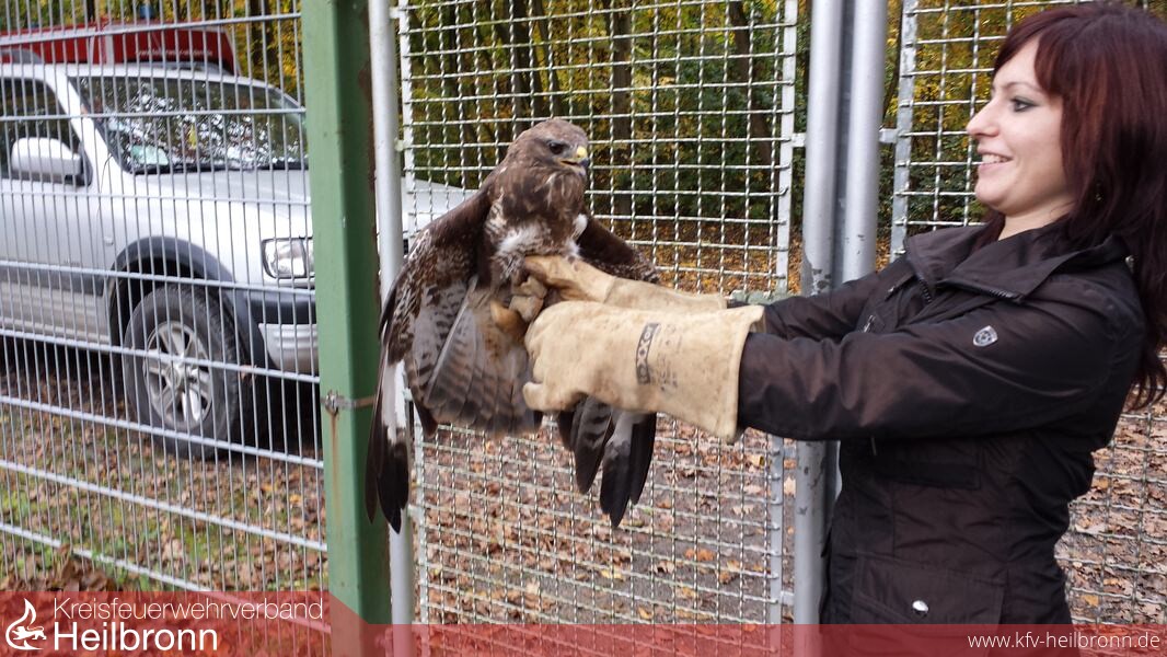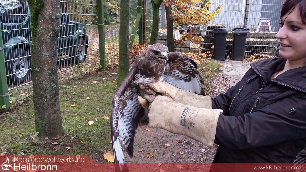 Da er sich einige Verletzungen zugezogen hatte, brachten wir den Vogel dann in die Greifvogelstation nach Bad Friedrichshall, wo er ärztlich versorgt und aufgepäppelt wurde.