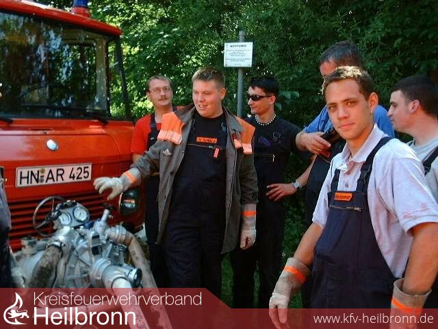 24 Teilnehmer traten am 28.5.02 zum Maschinistenlehrgang für Löschfahrzeuge in Brackenheim zur Ausbildung an, darunter eine Feuerwehrfrau. Der Lehrgang der durch Ausbilder Harald Zeyer durchgeführt wird, begann mit theoretischem Wissen und den Aufgaben der Maschinisten. Am Samstag den 1.6.02 ging es dann zur Praxis, am Haberschlachter See wurde dann mit 4 TS8 und einer Vorbaupumpe die Theorie in die Praxis umgesetzt und dies bei 26 C im Schatten. Bei dieser Temperatur fand der Vorschlag der Ausbilder große Zustimmung auf den Jäger 90 zu verzichten.Wie der Lehrgang ausgeht, folgt in kürze.