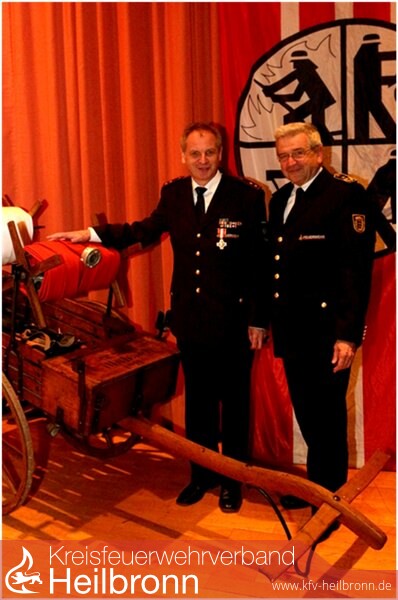 So brachte der Landesbranddirektor, Hermann Schröder, der – gemeinsam mit dem Obersulmer Bürgermeister Tilman Schmidt, dem Feuerwehrkommandanten Michael Schepperle und dem Kreisbrandmeister Uwe Vogel - seinem Chef das Feuerwehr-Ehrenzeichen in Gold bei der Hauptversammlung der Feuerwehr Obersulm überreichen durfte, seinen Dank für 40 Jahre Dienst in der Einsatzabteilung und seinen Respekt vor einem außergewöhnlichen Engagement in der Feuerwehr zum Ausdruck.
