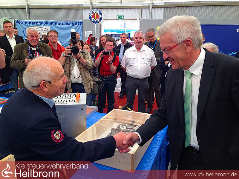 „Das haben Sie aber knackig vorgetragen“. Mit Handschlag besiegelt, war das Lob von Ministerpräsident Wilfried Kretschmann beim Mannheimer Maimarkt und verdiente Anerkennung für Siegfried Kern, dem Leiter der Fachgruppe Elektrotechnik der Freiwilligen Feuerwehr Neckarsulm.