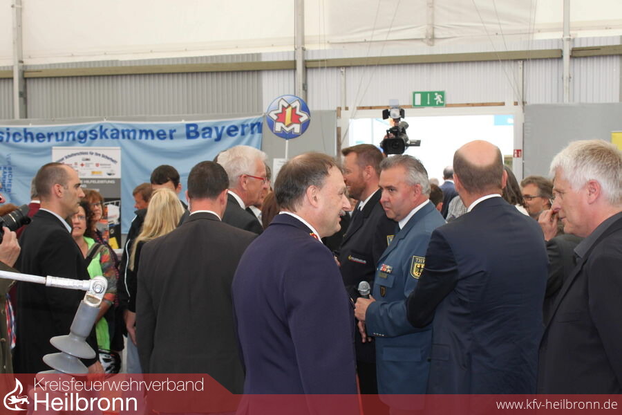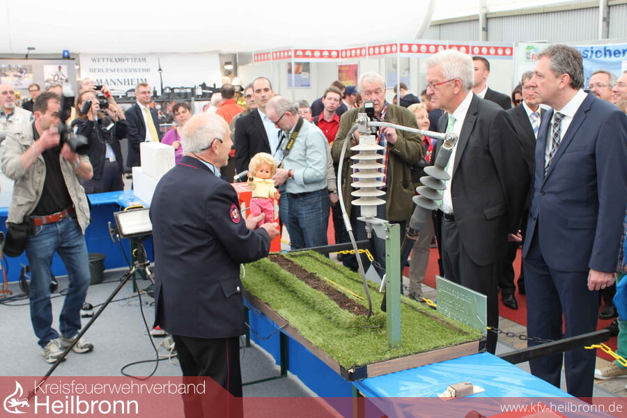 „Unser Schulterschluss für Ihre Sicherheit“ war Thema der „Blaulicht-Organisationen“ das auch zum Ziel hatte die gesamte Metropolregion Rhein-Neckar und Rheinpfalz in das gemeinsame Boot der Verantwortung für den Nächsten zu holen und deren Arbeit den Besuchern vorzustellen. Zum sicheren Umgang mit Elektrizität, auch mit Ökostrom und Photovoltaik, gab die „Fachgruppe Elektrotechnik der Neckarsulmer Wehr“, von Siegfried Kern fachlich kommentiert, manchen Tipp und zeigte auf, wie leicht ein Kabelbrand entstehen und wie schnell Strom zur Gefahr werden kann. Über die Präsentation, mit tatkräftiger Unterstützung von Feuerwehrmann Julian Schmitzer und wortgewandter Erklärung durch Siegfried Kern, war Ministerpräsident Wilfried Kretschmann mit seiner Delegation angetan. Er dankte dem Team für diesen wichtigen Beitrag über die Gefahren durch Strom, den er sich flächendeckend vorstellen könne.